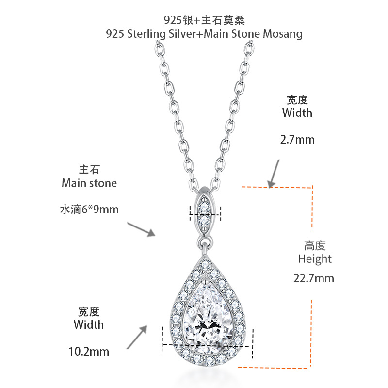 Introducing the Moissanite Elegance Pendant Necklace, a stunning piece that embodies the essence of modern sophistication. Crafted with precision, this necklace features a beautifully cut water drop-shaped moissanite stone set in 925 sterling silver, finished in a luxurious white gold color.